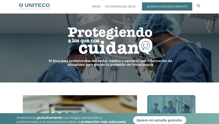 Uniteco contaba en el pasado con el blog “Lex Sanitaria”, no indexado a la web corporativa, sin una buena reputación de dominio, en un formato no responsive, sin tratamiento SEO y sin generación de conversiones. Con el proyecto de inbound creamos “Protegiendo a los que nos cuidan”, un nuevo blog que puso solución a todos esos puntos. El proyecto se completaba con ebooks gratuitos, campañas en redes y Google y un journey de scoring y nurturing.